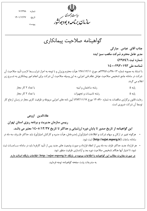 شرکت فنی مهندسی مکعب سبز ایده با هدف انتقال تکنولوژی، طراحی و ساخت تجهیزات معدنی استخراج طلا و مخازن صنایع شیمیایی دارویی و نفت، گاز و پتروشیمی در سال ۱۳۹۰ تاسیس گردید.